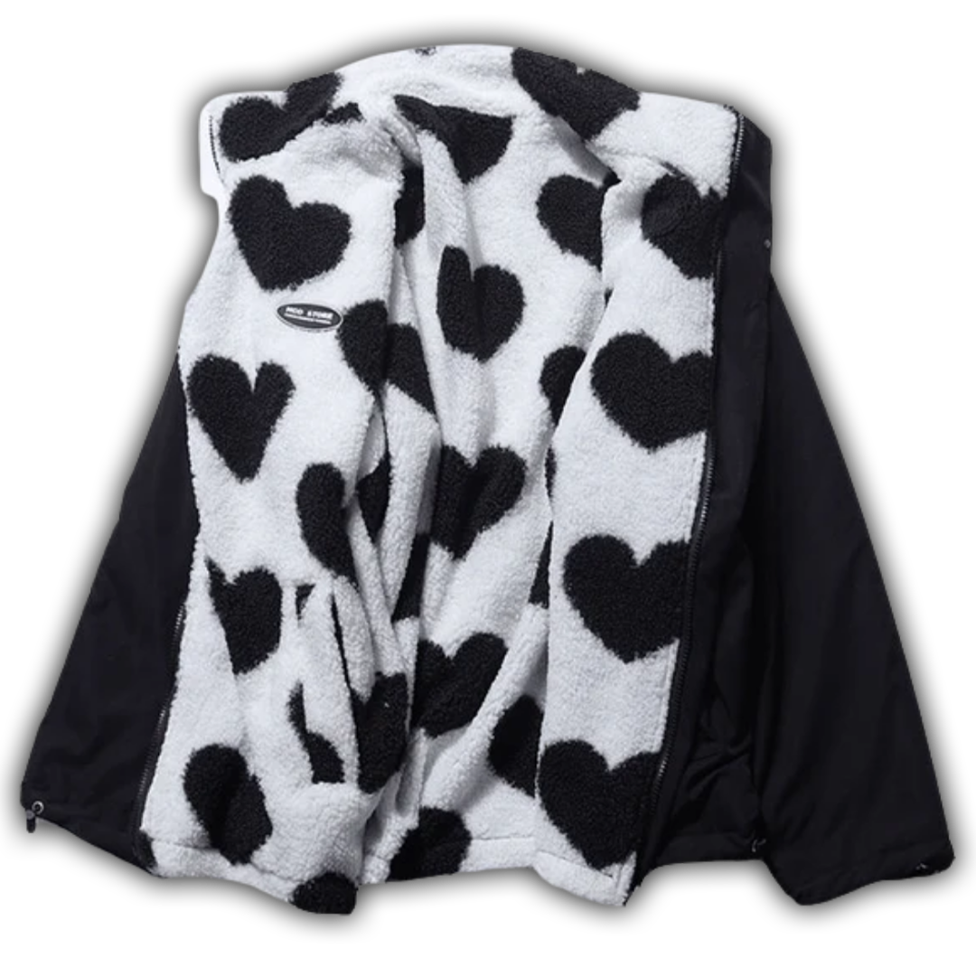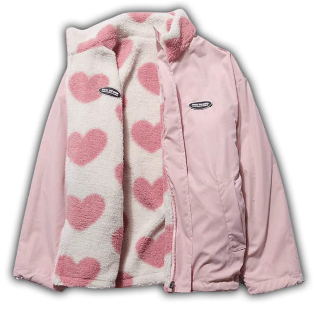 İki farklı stile tek parçada sahip olmanızı sağlayan Luther LOVE 2SIDE Jacket, dış yüzeyde minimal pembe tasarımı, iç yüzeyde ise yumuşacık kalpli teddy yapısıyla hem sevimli hem sıcak bir görünüm sunuyor. Çift taraflı kullanım özelliğiyle kombinlerinize anında karakter katıyor.